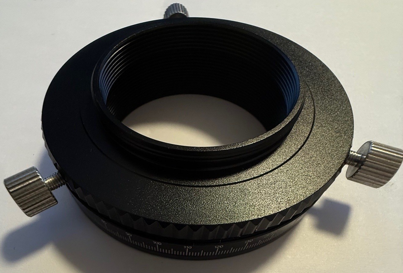 Dankzij deze Ganymedes Rotator M42 360 graden roteren kan je je astrofotografie camera of accessoire 360 graden om zijn as draaien om de sensor of accessoires recht te zetten. De Ganymedes Rotator M42 is uitgerust met een indicator voor een betere precisie; met de drie schroeven kan je de rotatie snel en gemakkelijk vergrendelen en ontgrendelen. Deze accessoire is feitelijk onmisbaar voor een perfecte framing van je objecten!