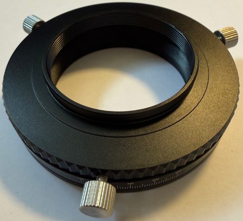 Dankzij deze TM48 360 graden rotator kan je je astrofotografie camera of accessoire 360 graden om zijn as draaien om de sensor of accessoires recht te zetten. De Ganymedes Rotator M48 360 graden rotator is uitgerust met een indicator voor een betere precisie; met de drie schroeven kan je de rotatie snel en gemakkelijk vergrendelen en ontgrendelen. Deze accessoire is feitelijk onmisbaar voor een perfecte framing van je objecten!