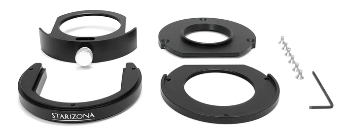 De Starizona modulaire filter slider is een verbetering van hun originele filter slider ontwerp. Door aanpassing mogelijk te maken door middel van in elkaar grijpende modulaire boven- en onder platen. Waardoor het beter aanpasbaar is aan verschillende optische systemen en het meest belangrijke verbetering is, dat er geen ongewenst licht meer binnenkomt.